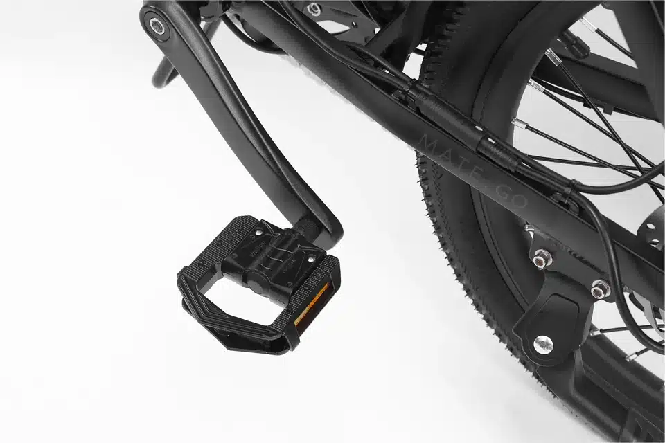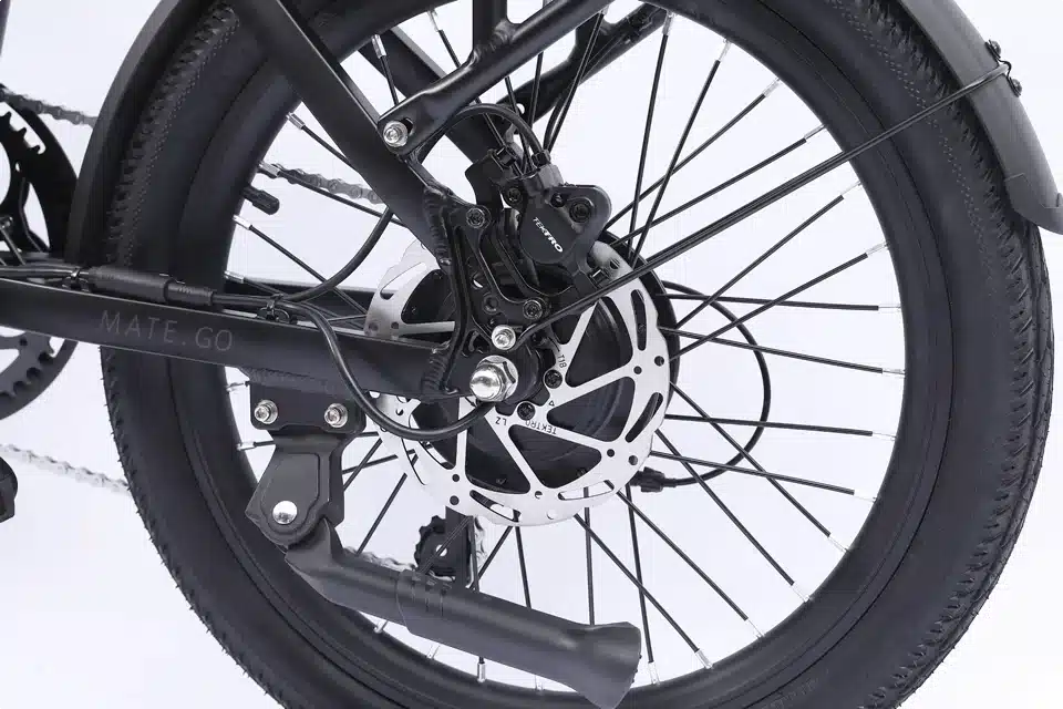 Het lichte 6061 aluminium frame met drie-staps vouwsysteem maakt de MATE Go eenvoudig mee te nemen en compact op te bergen. Hydraulische schijfremmen geven je betrouwbare remkracht in alle weersomstandigheden, terwijl de 7-versnellingen je flexibiliteit bieden op elk terrein.