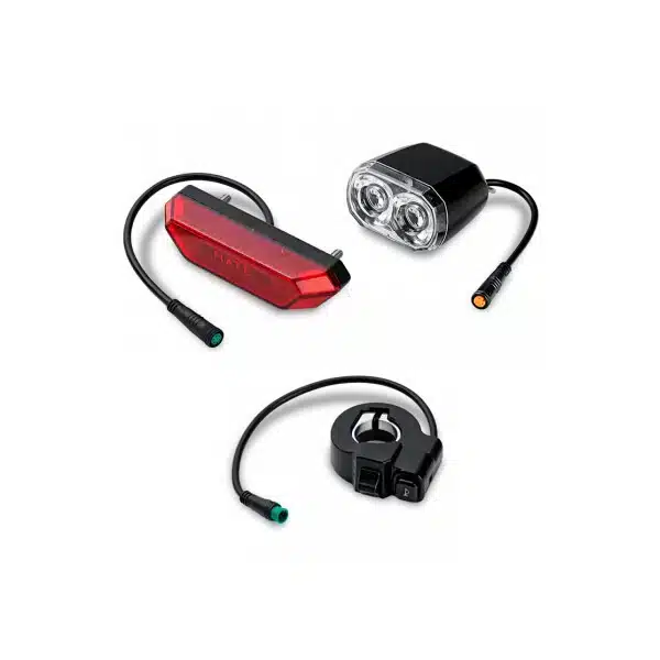 Aangedreven door de MATE-batterij, kan de MATE X Lichten en Toeter set eenvoudig worden bediend via controllers op het stuur. Ze combineren een dual-beam koplamp met ingebouwde claxon en achterlicht met ingebouwd remlicht en knipperlichten. Een mini-controllerbox die vooraf op uw MATE is geïnstalleerd, bedient de lichten, terwijl de knop-/schakelaarcontroller (inbegrepen) zowel de claxon als de richtingaanwijzers bedient. De splitterkabel (meegeleverd) verbindt de controller met zowel de claxon/achterknipperlichtschakelaar als het achterlicht.