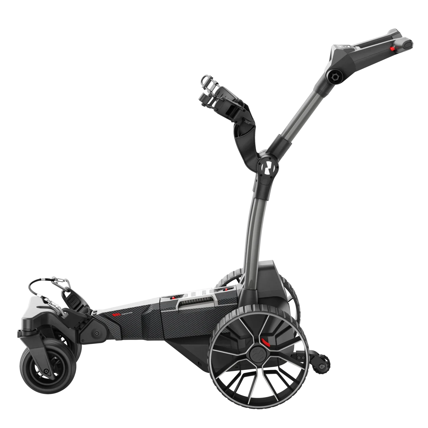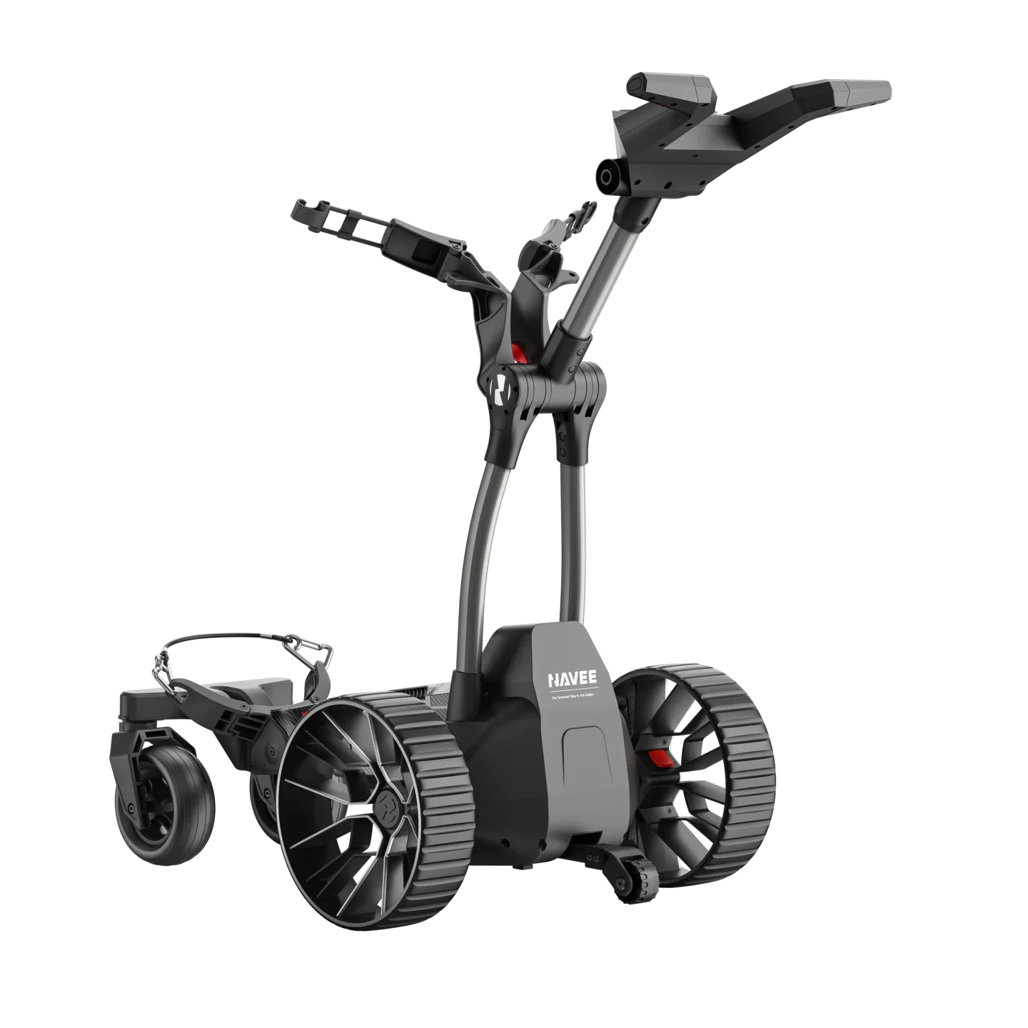 Het lichtgewicht aluminium frame zorgt voor een stabiele maar eenvoudig te vervoeren constructie. Dankzij het slimme vouwmechanisme klap je de NAVEE BIRDIE 3 compact in voor transport in de auto of opslag in de garage. De brede achterwielen bieden betrouwbare grip op gras en licht vochtige ondergrond. Het ontwerp is gericht op balans en duurzaamheid, waardoor de trolley geschikt is voor intensief gebruik gedurende het hele seizoen.