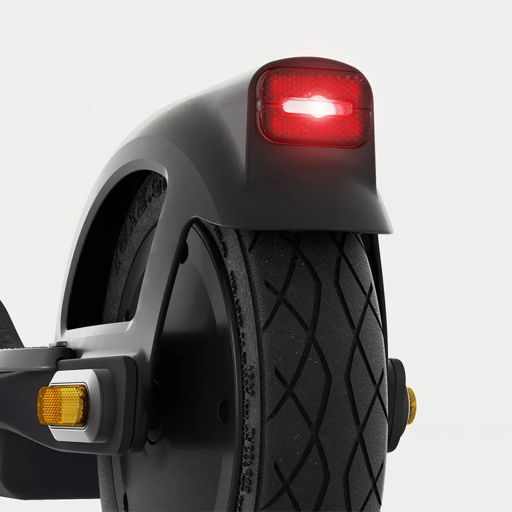 Met een heldere 150 lumen voorlamp, richtingaanwijzers op het stuur en een verbeterd achterlicht bent u goed zichtbaar, dag en nacht. Extra veiligheid in druk verkeer of bij weinig licht.