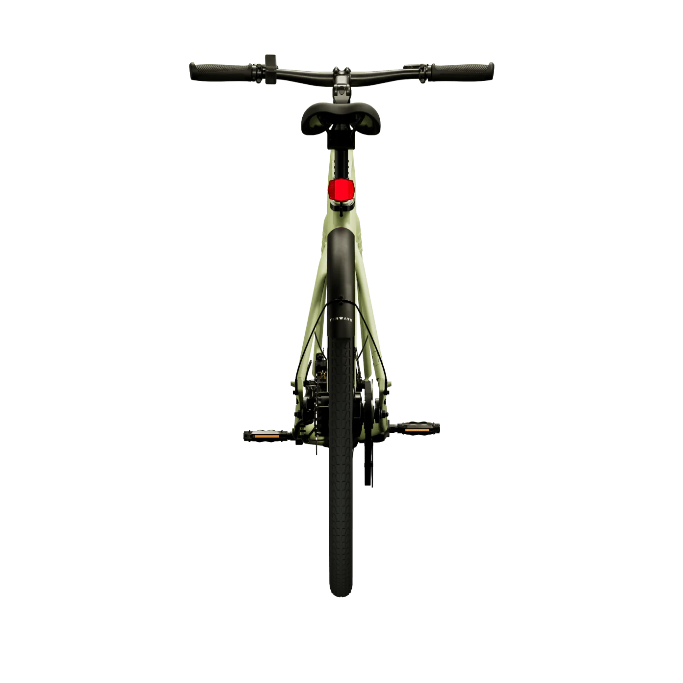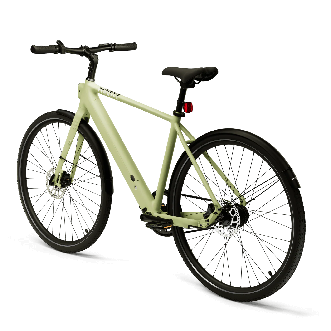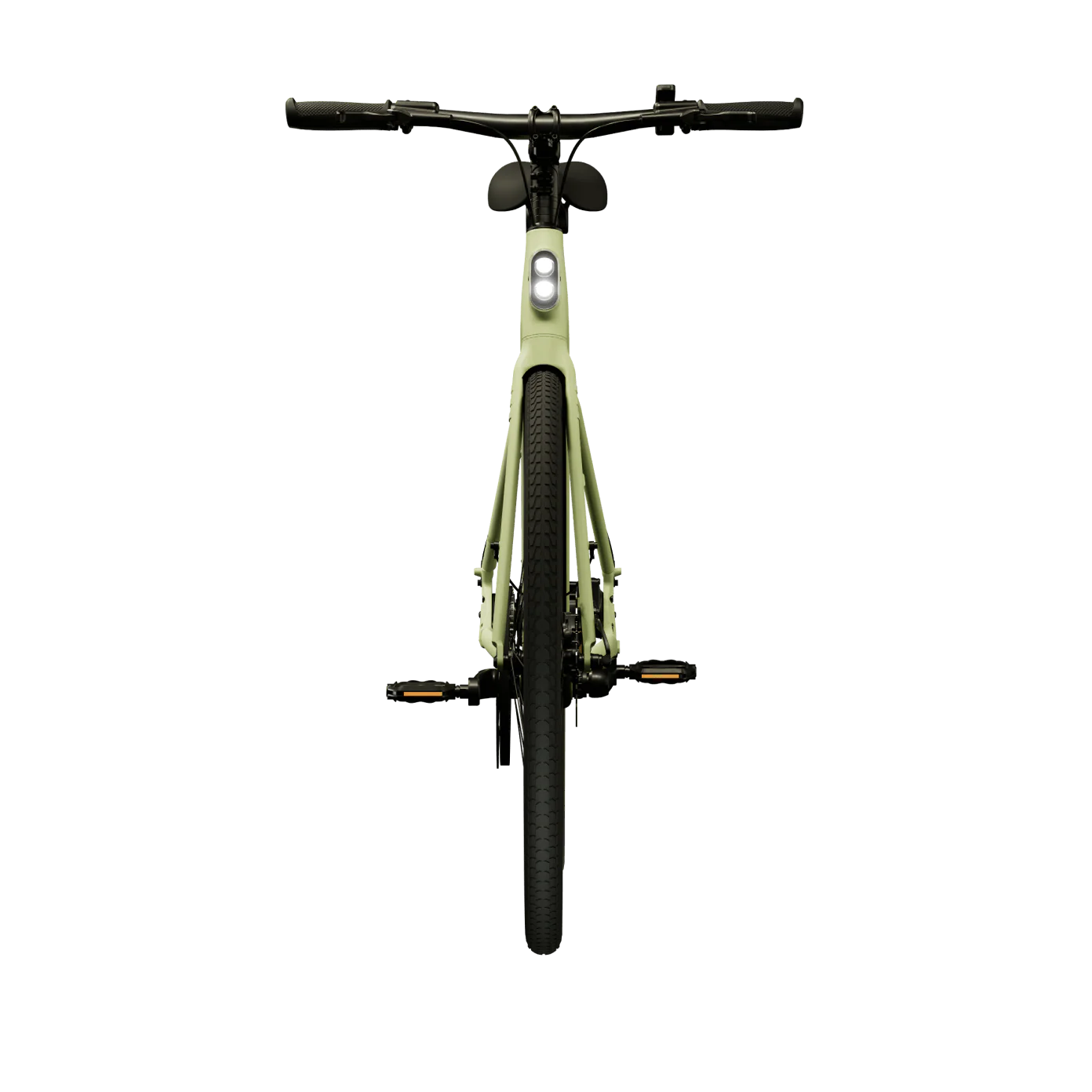 Het frame van 6061 ruimtevaartaluminium is licht, sterk en duurzaam. De volledig verborgen trapas en de strakke afwerking in Avocado Green benadrukken het frisse en moderne design. Aluminium velgen en voorvork dragen bij aan stabiliteit en rijcomfort.