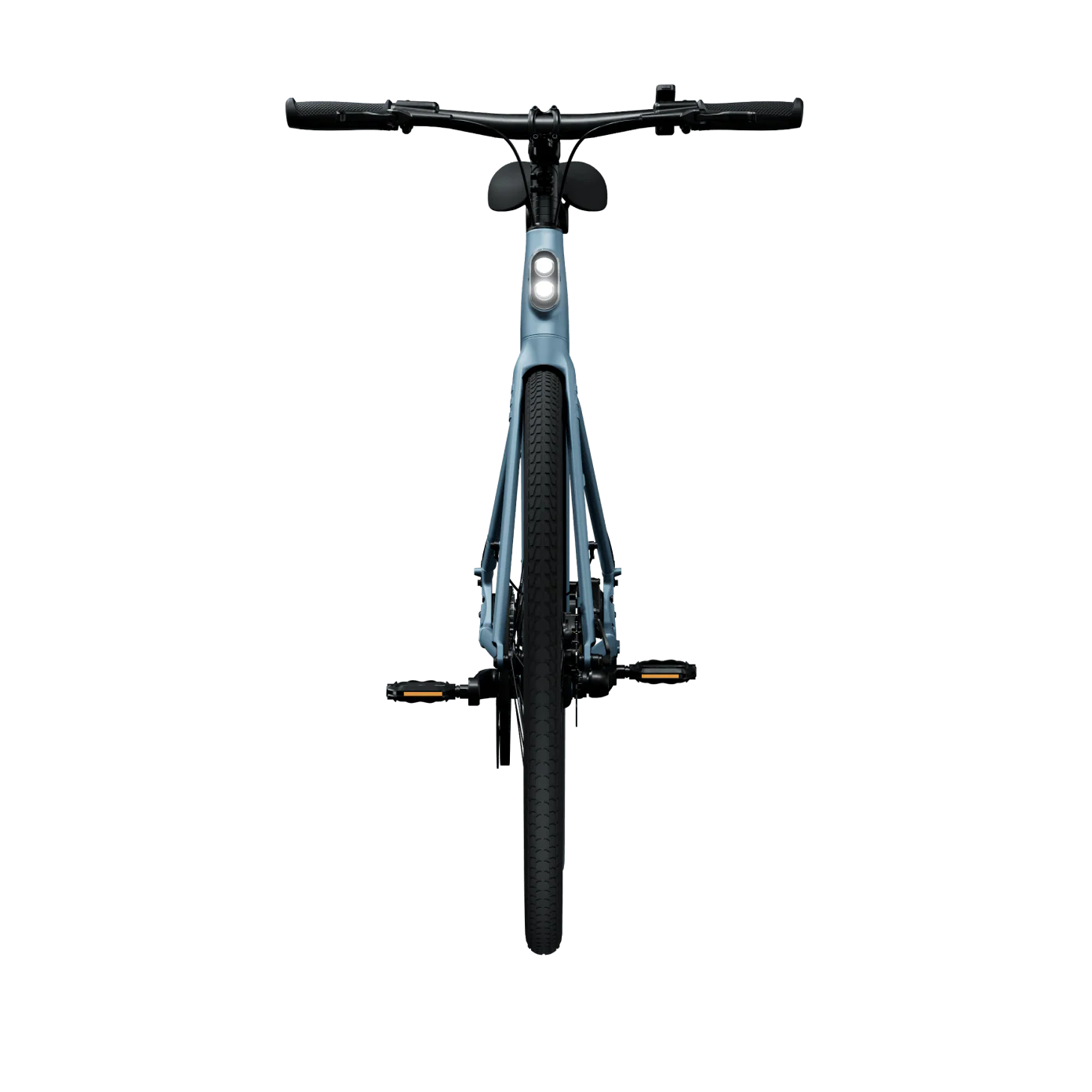 Het lichte en duurzame 6061 ruimtevaartaluminium frame met aluminium voorvork biedt stabiliteit en wendbaarheid. De volledig verborgen trapas en de strakke Sky Blue afwerking geven de fiets een frisse en moderne uitstraling.